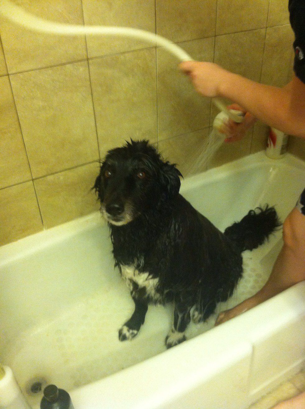 - Give them a bath. Some dogs hate being in water, but it is so much more fun for you to do it than a stranger in a dog grooming salon. So go buy your dog some nice smelling shampoo and give them a bath that will make them feel fresh!