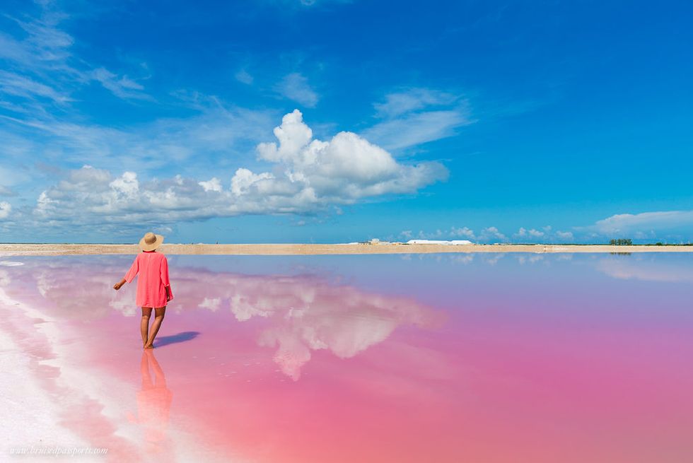 The water is pink!!! Who wouldn't want to go swim there or even pose for a stunning photo?