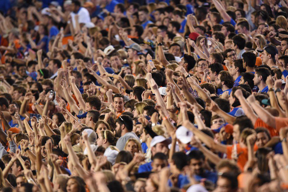 9. Unfazed by the misty rain that started fall in the Swamp towards the end of the game. All 90,000 plus fans stayed exactly where they were.
