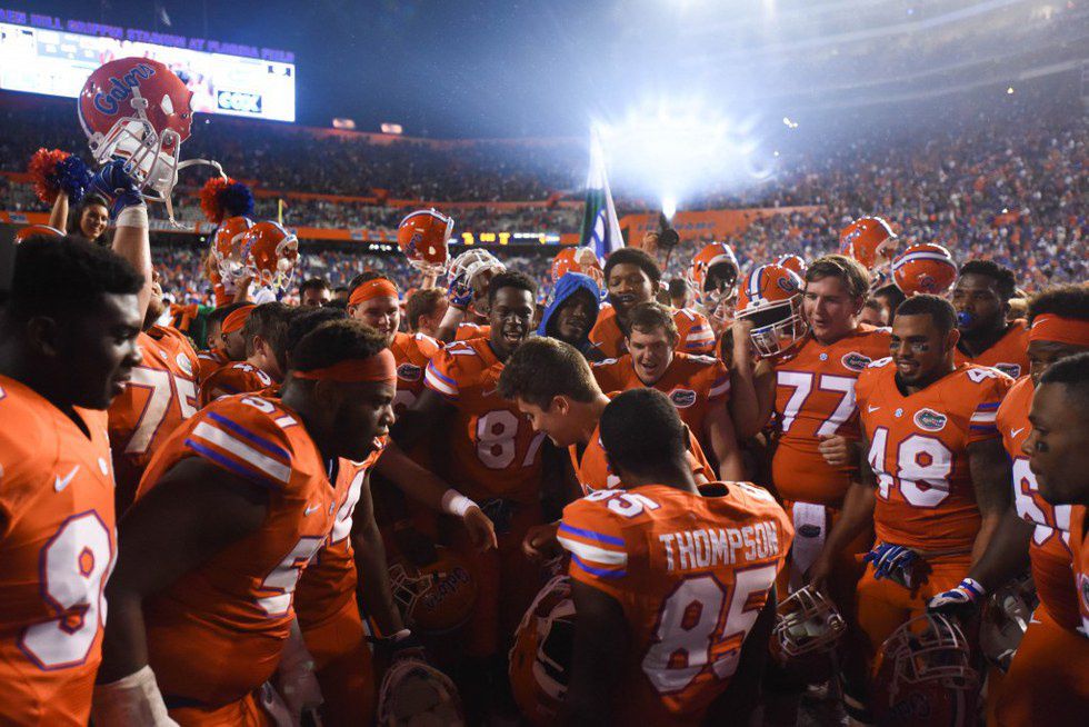 10. Elated when the clock ran down to 0:00 and the Gators had toppled Ole Miss 38-10.