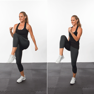 High knees target you thighs, butt, calves, and core. Also can help improve your balance. Doing a large number of high knees can boost your metabolism, and help burn calories.