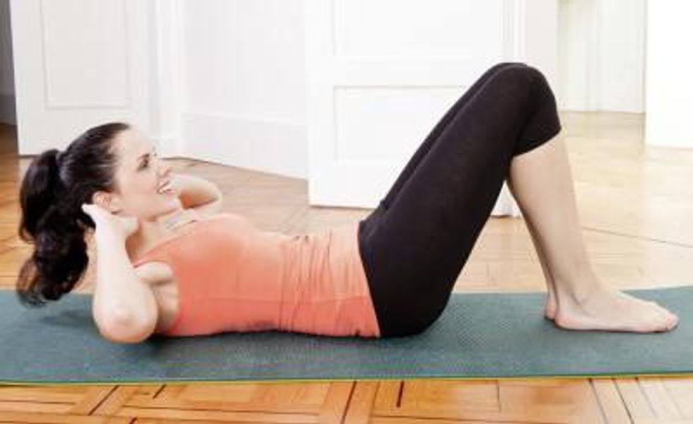 Everyone says that situps usually target your abs and will help you get a nice flat tummy. This exercise targets the rectus abdominis, obliques, and hip flexors.