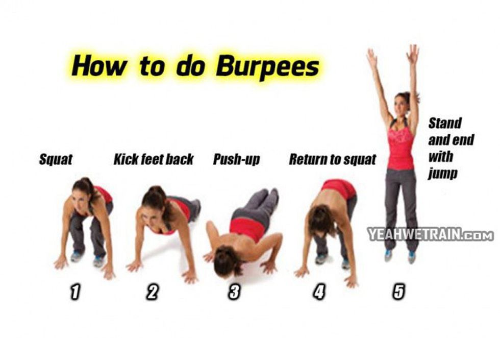 Burpees are a full body exercise that will help your arms, chest, quads, glutes, hamstrings, and abs. After doing a couple of sets of burpees you will feel that your muscles are getting stronger.
