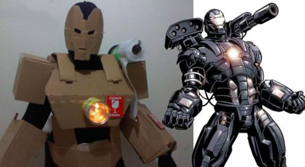 Yeah, put a lit candle in your flammable cardboard box suit. That's smart.
