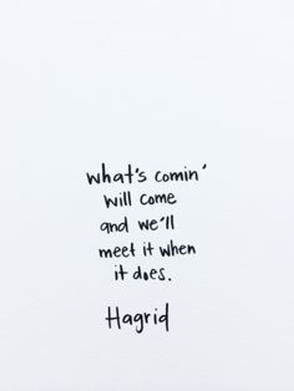 How many times do we find ourselves worrying about something that is going to happen? Hagrid reminds me that we are not in control of everything. We need to let loose of the reins sometimes and know that stuff is going to happen. As the old saying goes, "We will cross that bridge when we come to it."