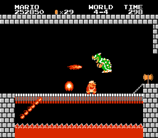 In this picture, it looks like the fireball from Bowser's mouth should be going towards him. If you play the game however, you see that it's actually going to the left where Mario was. Is this a glitch in the game? Maybe the creators did it to have a laugh when no one noticed? You decide.