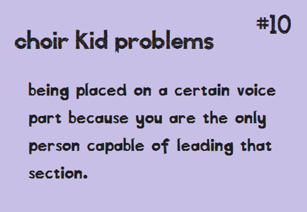Throughout high school or college choir, singers deeply identify with their vocal parts. Honestly, our parts were worn on sleeves. Every vocal line had its own personality. Our best friends were sitting right beside us as we developed into experienced musicians. Of course, the alto part has its own brand complete with a list of individualized experiences, memories, and expectations. No other voice part endures the life of an alto, for we are a special breed. Here are a few things that every former or current alto remembers: