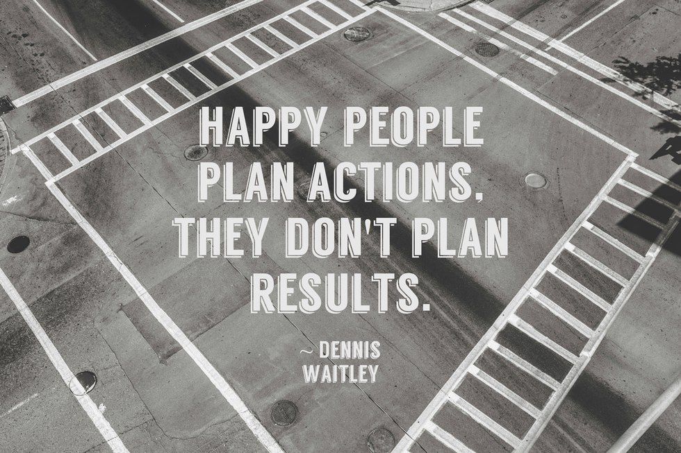 People who reach true happiness do so by planning and taking action, not by simply anticipating results.