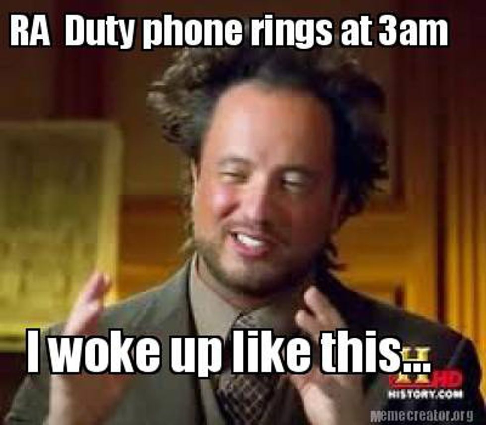 8. RA's are never judged for the way they look when it comes to their duty nights, and the mornings after duty nights. There is no such thing as a walk of shame, but a badge of honor. I woke up like this because I am an RA!