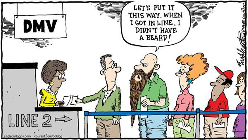 Delaware is a state where you have to drive everywhere, so trips to the DMV were pretty much mandatory on a regular basis. Just when you thought it couldn't get more boring. Wait, did they spelled my name wrong? *Grabs another number*