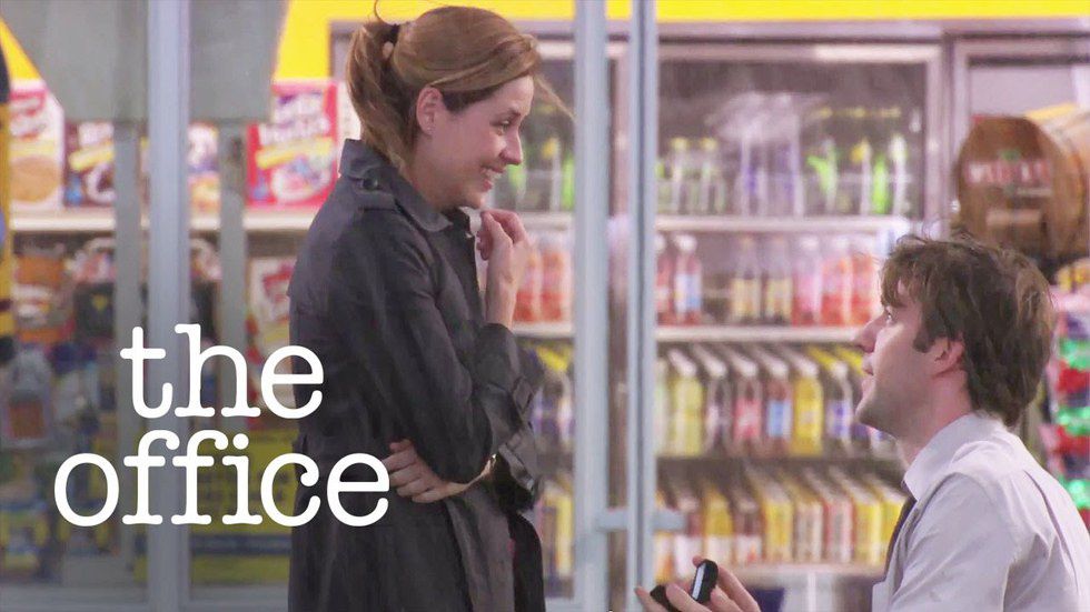 AKA the most adorable proposal ever. Even though it happens at a gas station in the pouring rain, Jim Halpert still wins