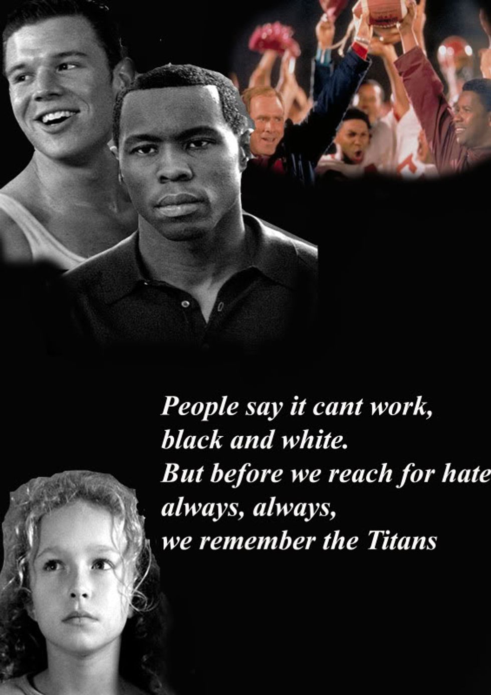 It has been sixteen years since the release of "Remember the Titans". This movie changed how I view racial issues today, because it is set only 45 years ago from today, at the period of school integration. It mixes humor and honesty to show the power of a team working together to win. In the process the team unites a town divided along racial and economical lines .The story is based off of real life events and characters who rose above the racial tensions in their community. Today it is clearly a classic, not just because it stars the fabulous Denzel Washington, but because we can still take lessons from it today.