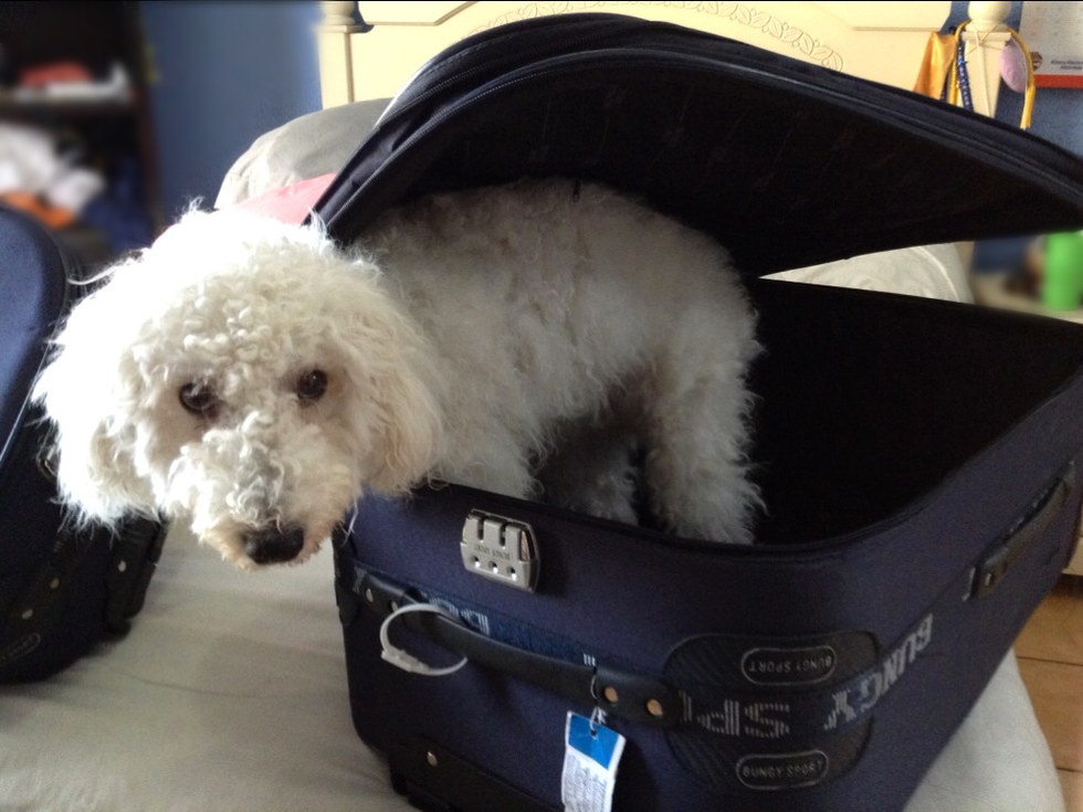 As I'm writing this, I can picture you snuggling under the sofa with the Tinker Bell blanket my sister gave up for you. I can imagine your tiny white curls and how many knots you must have since I left you five weeks ago. I can see you jumping all around the house, bugging everyone to play with you with that little rope toy my mom got for you.
