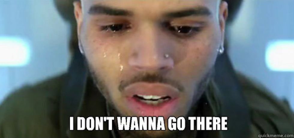 "I don't wanna go there. We should never go there. Why you wanna go there? I guess I gotta go there." Chris Brown, I understand. COMPLETELY. WE UNDERSTAND. The day that I have finals these will be my exact thoughts.