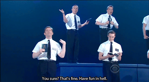 This musical is not for those who are easily offended. Elder Price was hoping he'd be placed in Orlando, Florida for his mission but instead, got the worst partner and got placed in Uganda, where no one wants to become Mormons. Elder Price becomes frustrated and stops trying. His partner Elder Cunningham begins lying to the people of Uganda to try to get them to convert. I dare you to try not to cry laughing as Elder Price and Elder Cunningham try to turn the people of Uganda into mormons through lies and their own self-doubt in the lord.