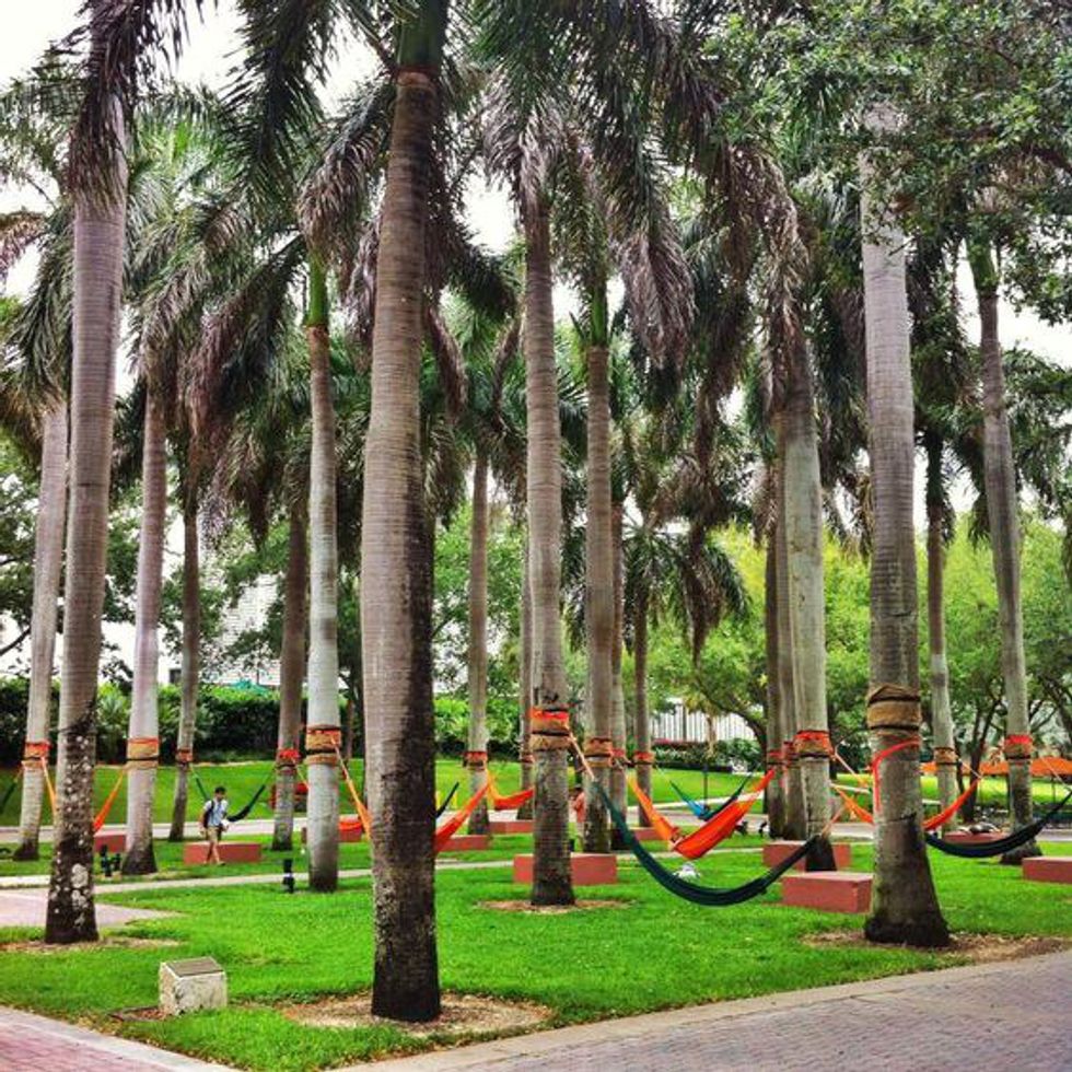 Minus the palm tree, this photo accurately describes Athens on a sunny day. There is no tree without a hammock anywhere on campus, so good luck trying to find a spot.