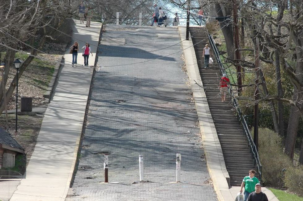 If you don't navigate your routes around not going up these hills, you do not go to this school.
