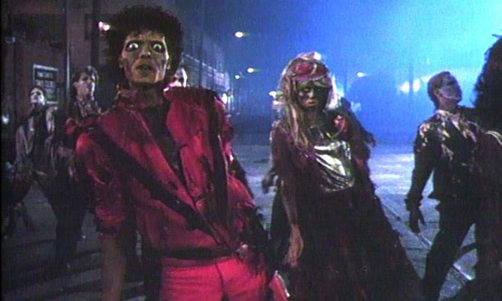 The iconic music video features haunted house trademarks like floating heads and ravens, spliced with shower scenes referencing Hitchcock's Psycho.