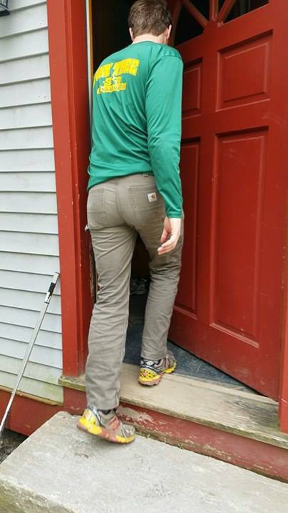 Most likely you won't see him in much other than a t-shirt and jeans and maybe some Carhartt's once in a while. He has a "good pair" of jeans that are for special occasions (when you can get him to go out to dinner) and his t-shirts seem to all look exactly the same, oil and sweat stained. But he manages to pull it off everyday.