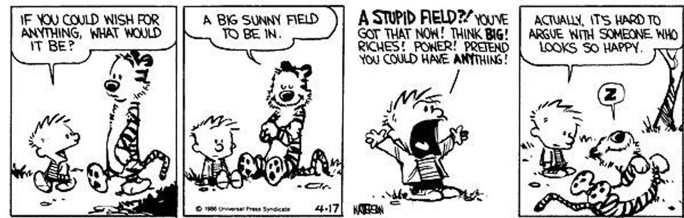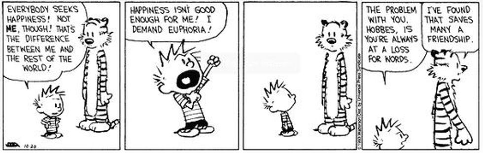What has made "Calvin and Hobbes" comics so widely successful is how relatable Calvin is. He has no problem saying what we are all thinking. He embraces who he is, even when it seems as though everyone around him doesn't appreciate him. "Calvin and Hobbes" humorously takes a stab at moral philosophy through the eyes of a wise-for-his-age kid. Calvin seeks to make the most out of life, which is something that we should all seek to do.