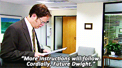 “…before I left, I took a box of Dwight's stationery, so, from time to time, I send Dwight faxes. From himself. From the future.”