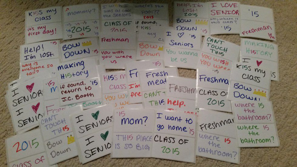 On top of all the typical first-day-freshman-fears, you had to figure out the best possible way to get to all of your classes without walking through the Senior Swamp while attempting to avoid all possible contact with the seniors who were out to sticker you. If you did get stickered, you smiled and tried to brush it off even though you were freaking out on the inside.