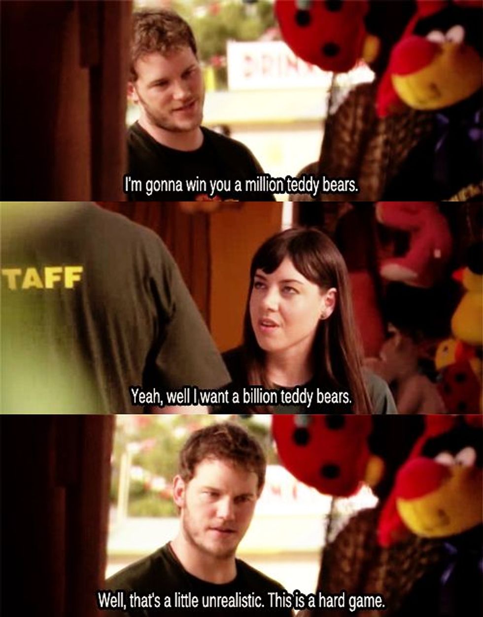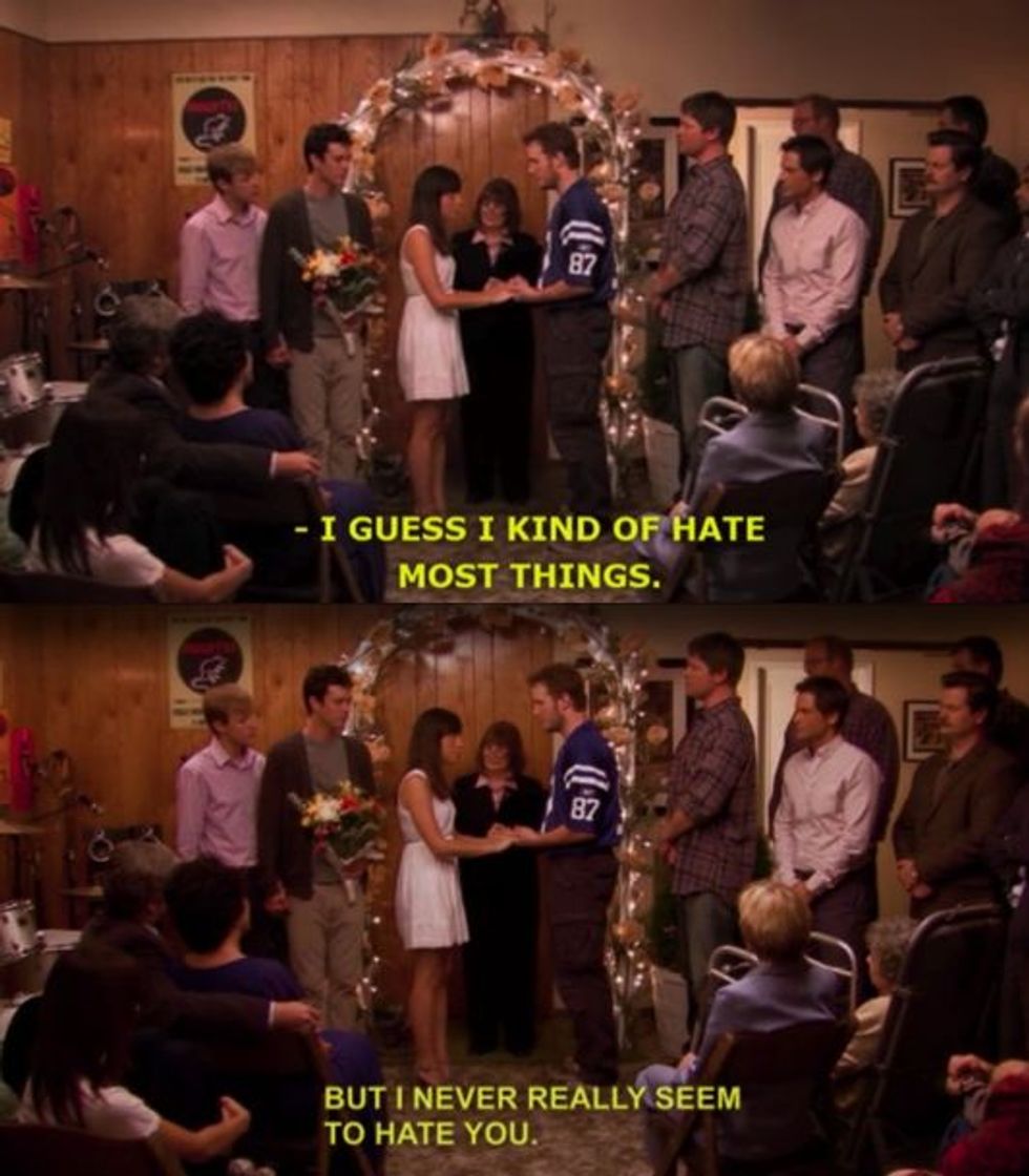 Because Andy and April show us that whether it means sharing gum or going on 30-hour car rides together, true love is unconditional love.