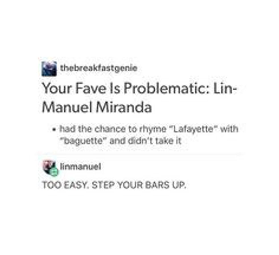 Read these. Appreciate the rhymes. Appreciate the lyrics. Lin uses words like “jettison” and “quagmire” and “resilience” and “Socrates.” Who just does that? And now say them 10 times faster than you were before and you’ll have an appreciation for what those actors are doing up on stage every night.