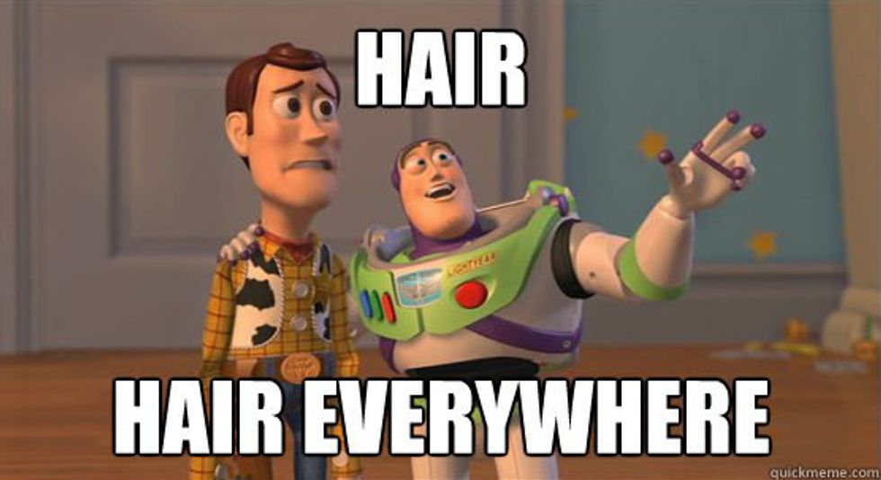 It's honestly a miracle how there is any hair left on my head with how much falls out and ends up around my house and life. Forget having a dog, just get a friend with long hair and get the same effect of finding hair on all your clothes and belongings.