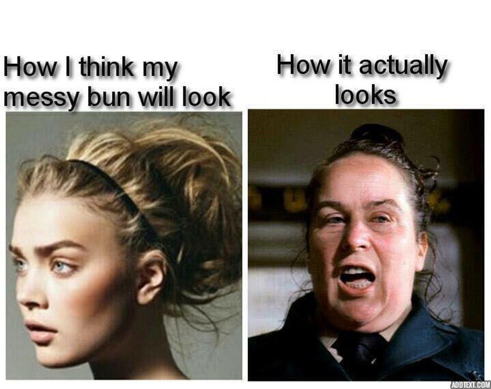 3. Getting that perfect "messy bun" takes way more time and effort than it should.