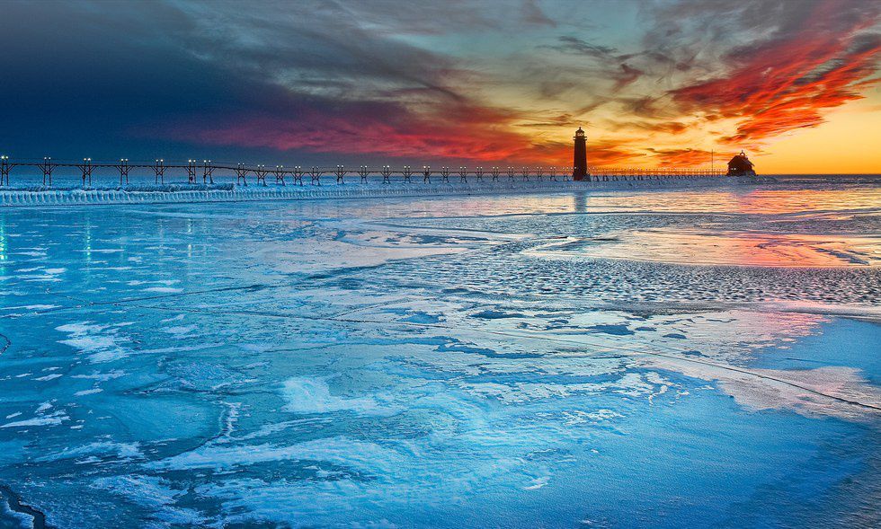 Sure, the snow and ice make it cold, but don't stop the sunsets from being just as colorful and majestic as in the summer.