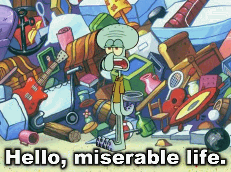 Being that I’m a very sarcastic (and arguably cynical) person, I’ve found myself quite drawn to the many Squidward GIFs on the app, as it seems there is one that fits every scenario. Squidward is, bar none, my favorite character on Spongebob, partially because of his dry sense of humor and partially because of how relatable he is (especially considering he’s a cartoon squid). Whether you’re typically a sarcastic person or not, I’m sure that everyone can attest to having a “Squidward moment” every now and then. Here are the ones that I find the most relevant to my life.