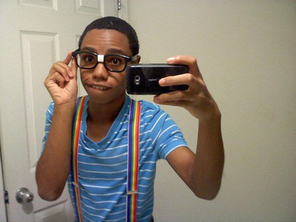 Tape on the glasses is a common item used for nerd costumes, but lets face it you probably had to do this for real once. I know I had to!