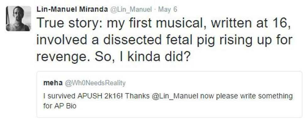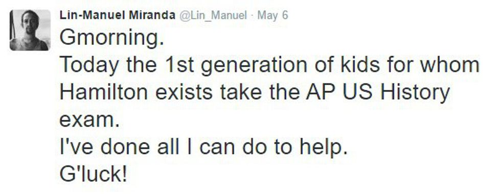 He wished good luck to all the APUSH kids he hoped "Hamilton" helped. I know I would've loved something like this during my APUSH days.