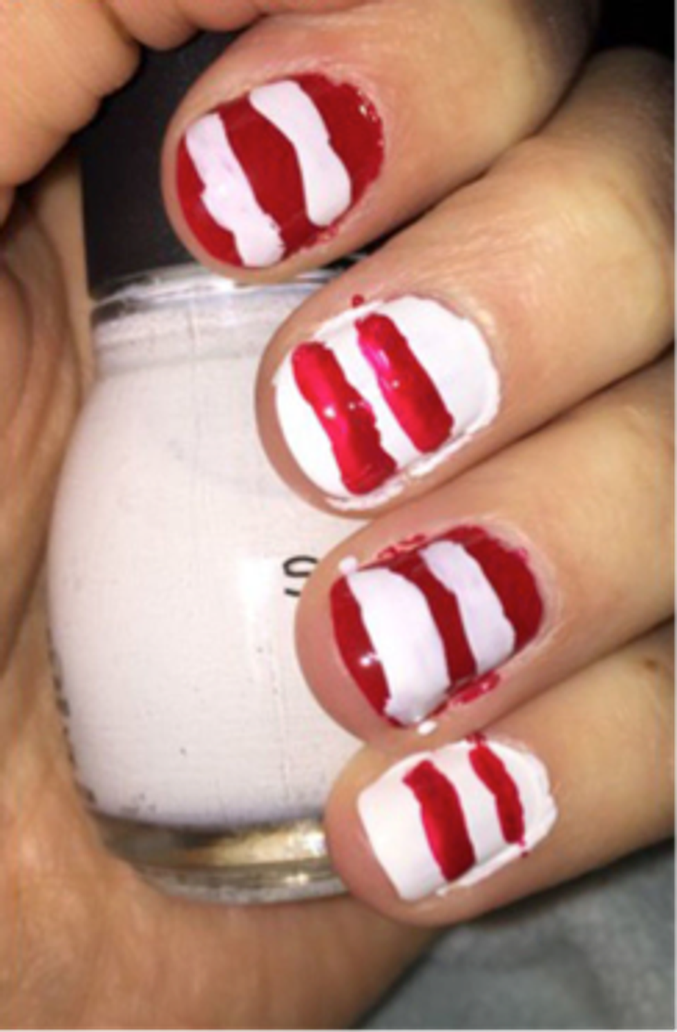 We’ve all done this one before. We try to make some cute Christmas candy cane inspired nails and end up with something that even Waldo would be ashamed to be seen in.