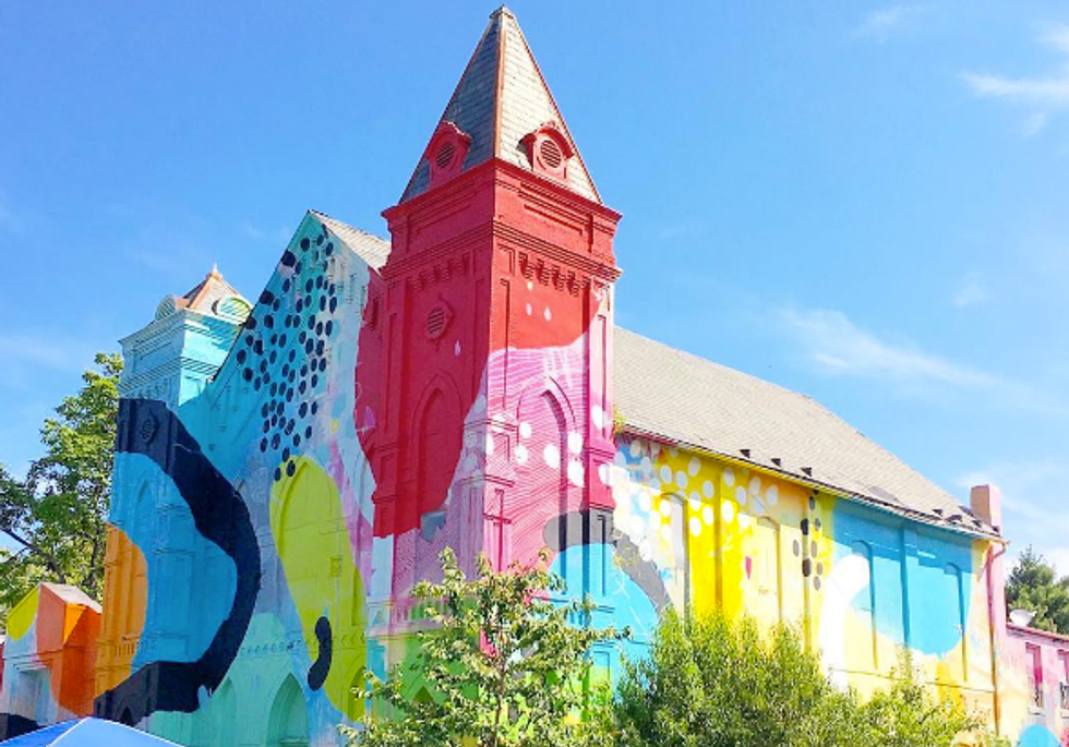 This church-turned-community center takes the concept of "colorful" to a new level. If you're interested in seeing what's inside, check their online schedule (found here) to see when they are hosting the next event.