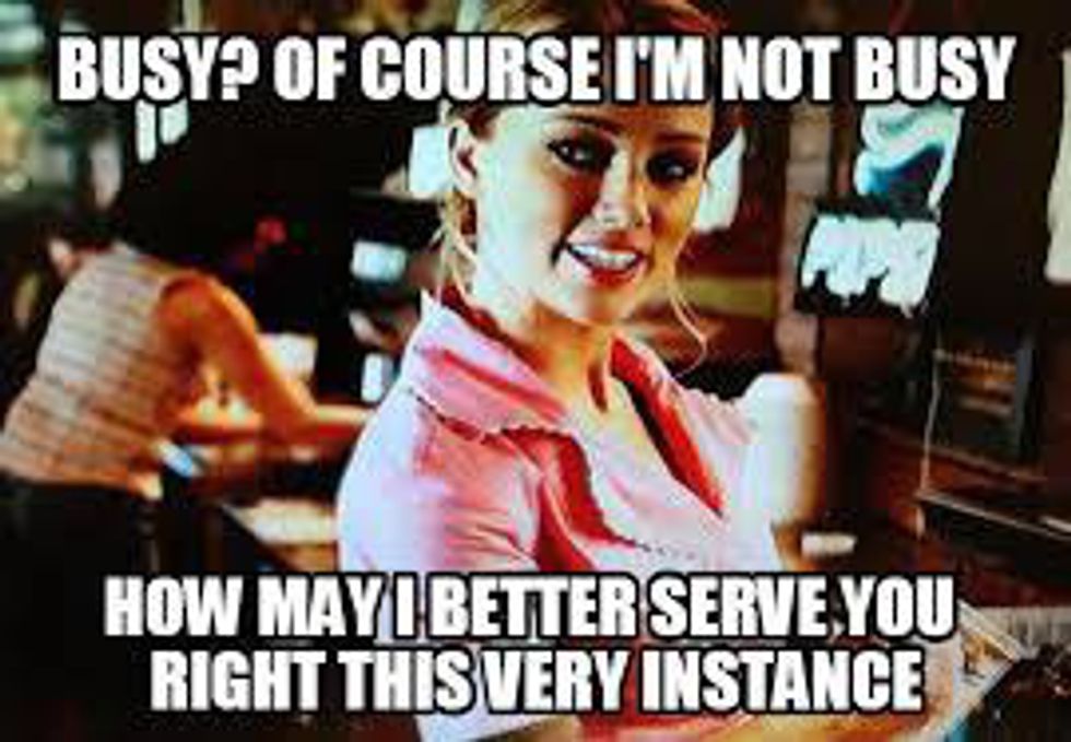 I know it has already been said, retail is the worst job in the world, well I'm about to say it again. Retail is by far one of the most terrible jobs. However, I'm about to say something that not many have said before; retail is one of the most satisfying and gratifying jobs. You learn many qualities which will help you divide and conquer the real world, namely patience. Indeed, there are times when you serve a table that is insatiable, where you seem not to be able to do a single task right. Most don't think about what their server is dealing with while serving them. However, the amazing customers you meet and the friends you make in the restaurant industry make the hardships all worthwhile. I need to reiterate; I do indeed love serving, this list is mainly to be funny and draw attention to common server problems.