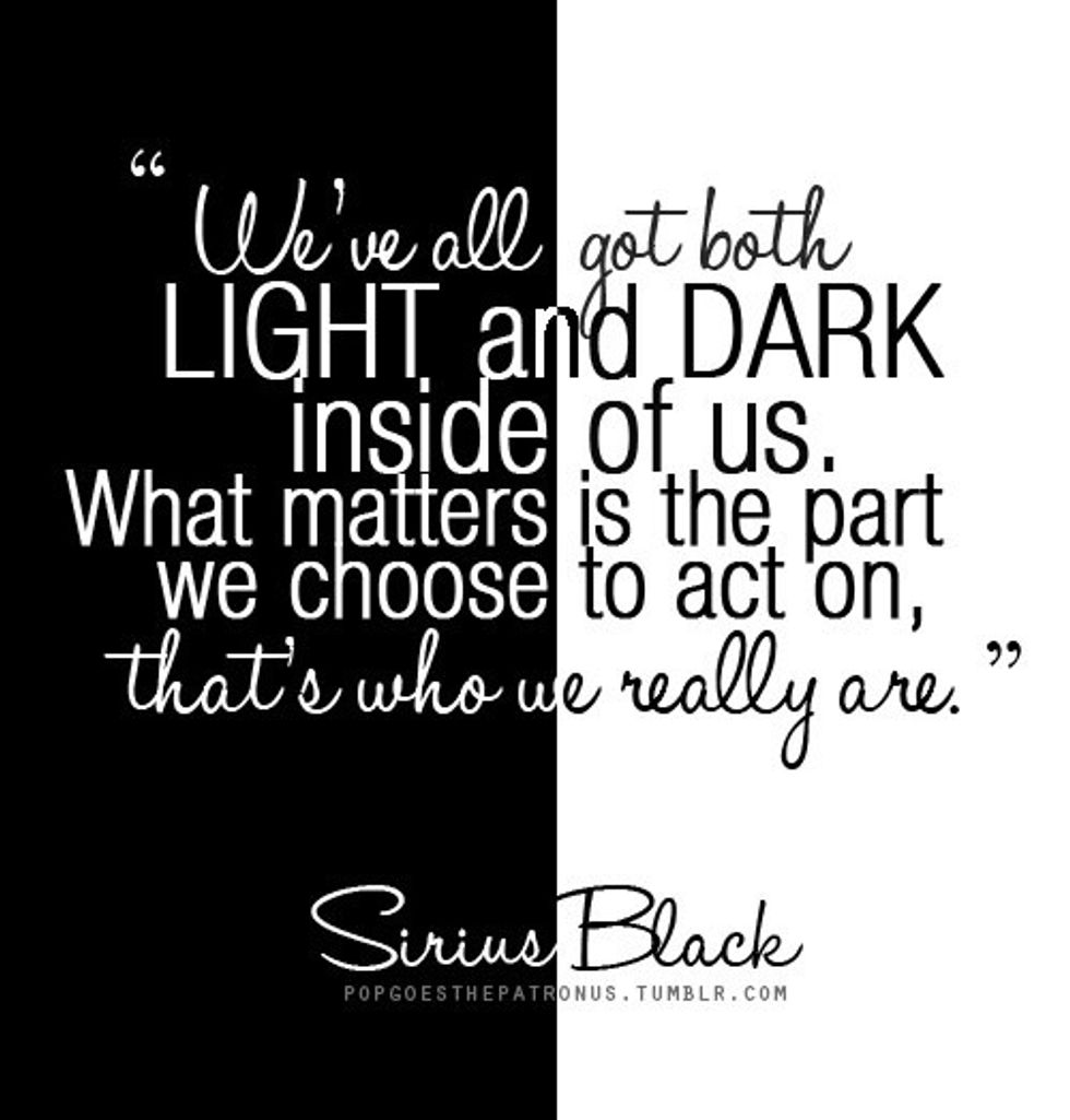 We've all got both light and dark inside us. What matters is the part we choose to act on. That's who we really are.