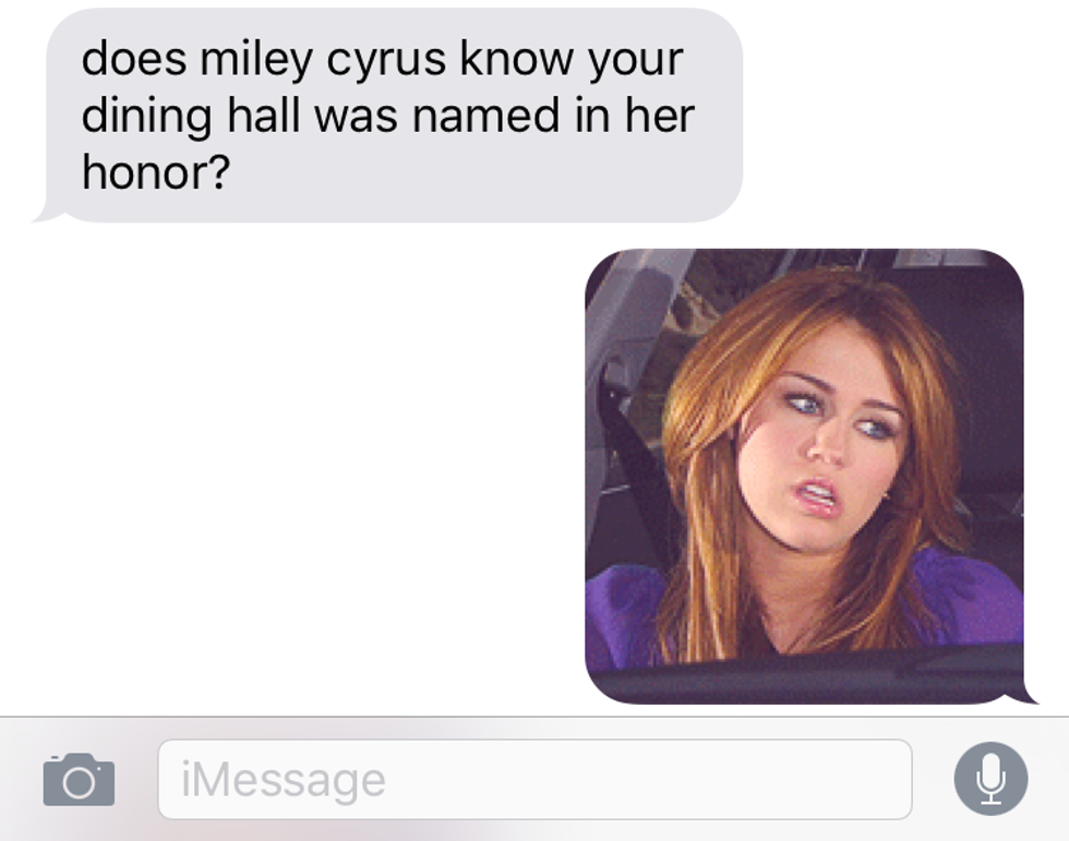 Miley Hall is the home of our only dining hall, freshmen dorms, the bookstore, student development and Miley Mart. And despite the jokes from everyone who visits campus, it's named after Sister M. Hilda Miley -- not Miley Cyrus.