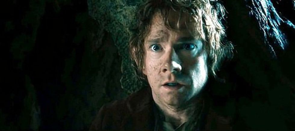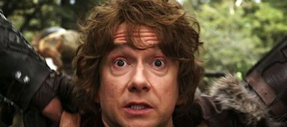 Bilbo, afraid of Thorin's talk of adventure, let out a shriek "like the whistle of an engine coming out of a tunnel", fell to the floor, and repeatedly yelled, "struck by lightning, struck by lightning!" And I thought I was dramatic.