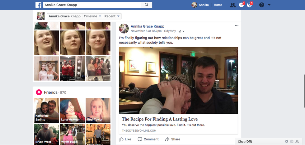 The snapshot: I've already started my writing career. I have a perfect relationship. And 870 people who like me.