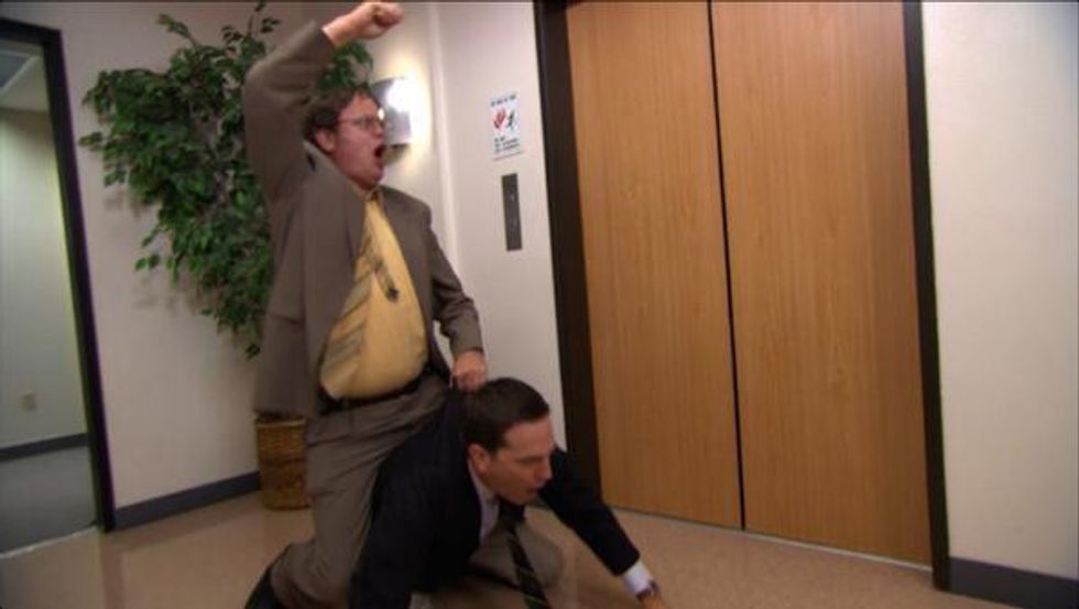 Dwight: "Every day for 8 years I have brought pepper spray into this office to protect myself and my fellow employees and every day for 8 years people have laughed at me. Well, who's laughing now?"