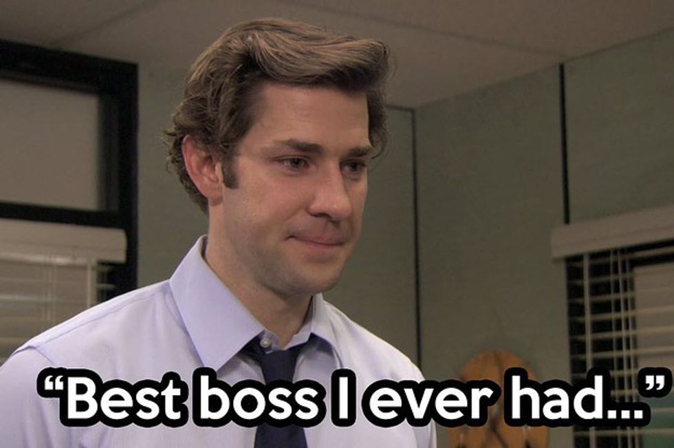 Jim: "Tomorrow I can tell you what a great boss you turned out to be. Best boss I ever had."