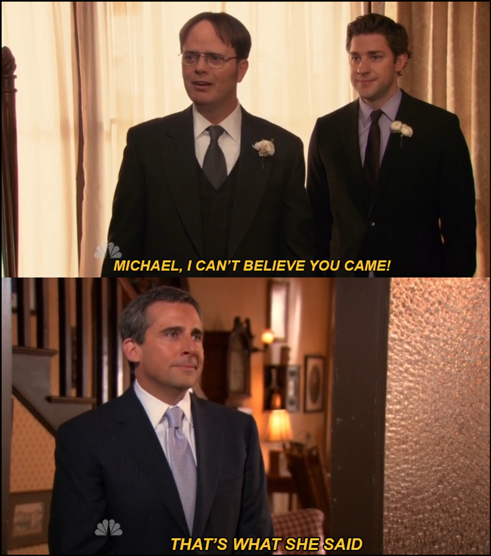 30. And finally, when Jim tells Dwight he can't be his best man and Michael shows up