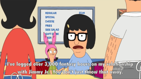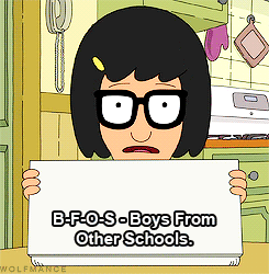 Tina Belcher, famous for her work on 'Bob's Burgers' is an icon to everyone everywhere because of her awkward being and romantic pursuits. Her struggles include many failed attempts to connect with boys, resulting from her lack of social skills. As I'm sure many others do, I feel a certain connection to the quirky character because I also find myself struggling in situations involving potential male companions. The following display expresses how accurately Tina depicts my tragic love life.