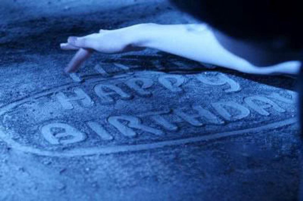 6. Harry drawing himself a birthday cake in the dirt, telling himself to make a wish, and then blowing out the "candles."