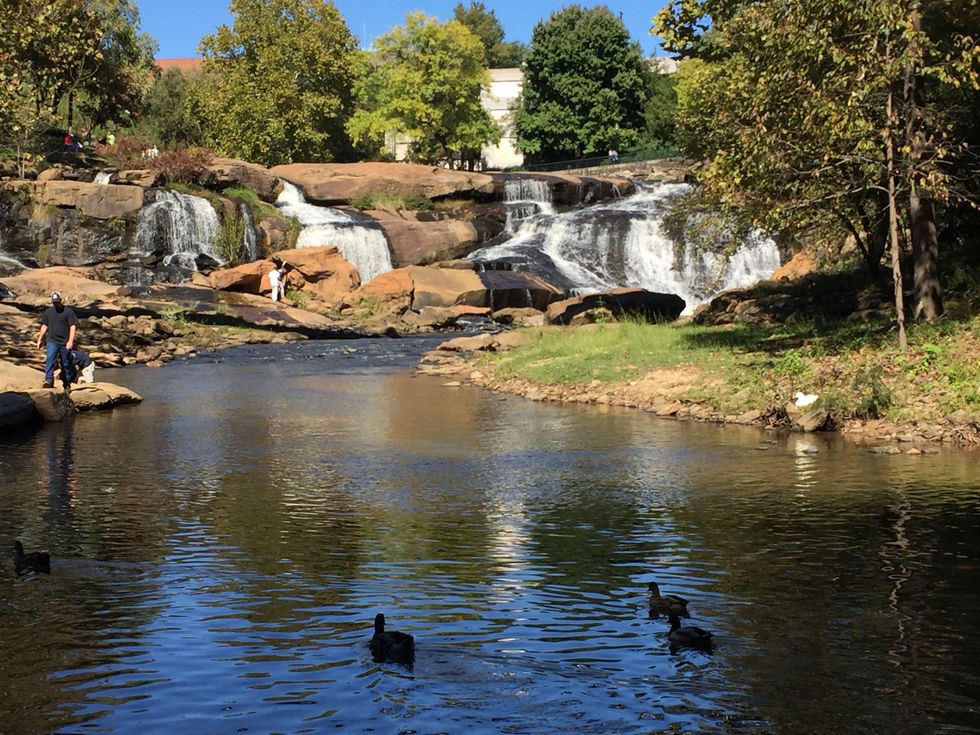You can never get enough of the pretty views of the Reedy River Falls. There's always something going on and you can sit there for hours just watching the placid waters.