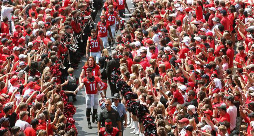 - Cheering as the team makes their way toward the stadium in the Dawg Walk.