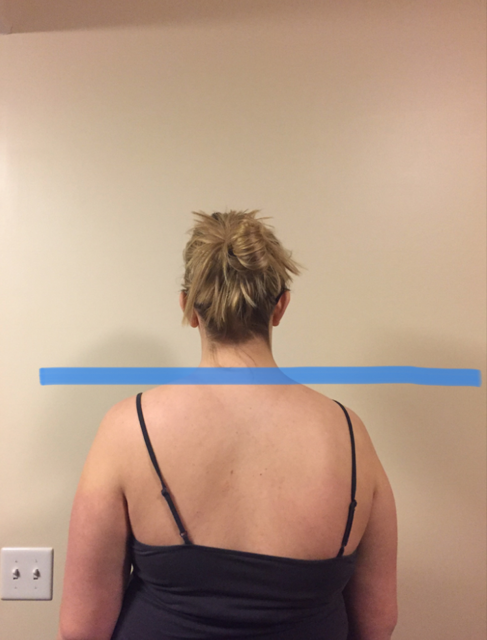 Notice that my right shoulder slants lower than my left shoulder.