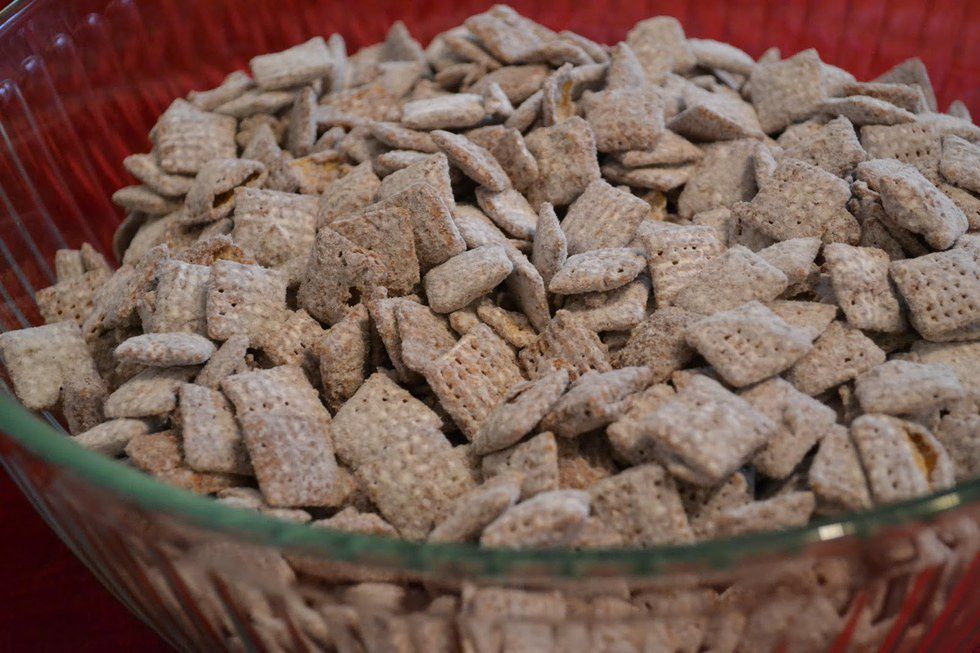 1. Pour Chex cereal, nuts, square pretzels, M&Ms, and chopped Oreos into a large bowl. Mix and shake until well stirred and evenly dispensed.